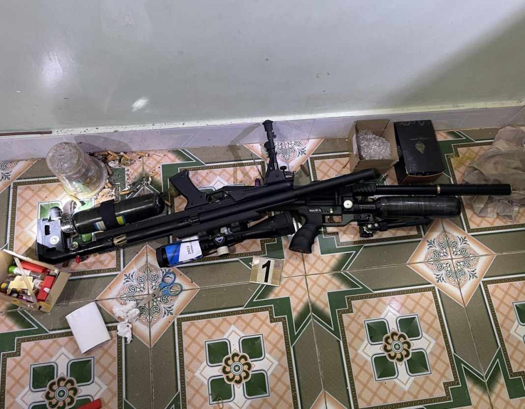 Khám xét khẩn cấp chỗ ở của Hà, lực lượng công an thu giữ một túi nilon bên trong chứa ma túy heroin, 2 viên ma túy hồng phiến, 2 khẩu súng hơi và 279 viên đạn chì cùng một số tang vật khác.