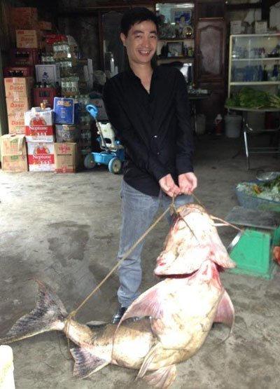 Hiện tại, người dân cho biết những cá thể cá chiên nặng từ 3 - 5kg may mắn vẫn có thể bắt được, nhưng to và nặng như cá thể cá chiên trong ảnh là rất hiếm.