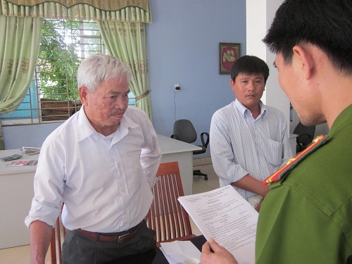 | Cơ quan an ninh điều tra công bố quyết định khởi tố vụ án, bị can và lệnh tạm giam đối với giám đốc Lương Hạnh (áo trắng, bên trái) |