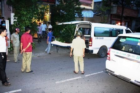| Cơ quan chức năng đưa thi thể nạn nhân ra khỏi khách sạn T.T.L trong đêm 18/8 |