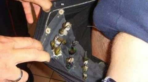 Chim được giấu ở mặt trong chiếc quần (Ảnh minh họa từ một vụ vận chuyển lậu tương tự)