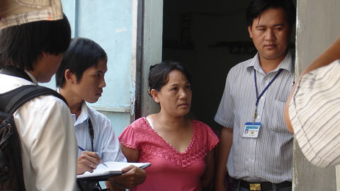 Bà Phụng (áo đỏ) đã bị bắt khẩn cấp vì hành hạ bé gái 3 tuổi tại cơ sở nuôi giữ trẻ chui.