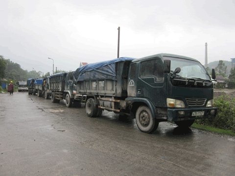 | Hàng đoàn xe tải chở than được bà Hàn cấu kết để bán than lậu bị bắt giữ. |