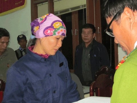 | Cơ quan Công an đọc lệnh bắt bà Nguyễn Thị Hàn. |