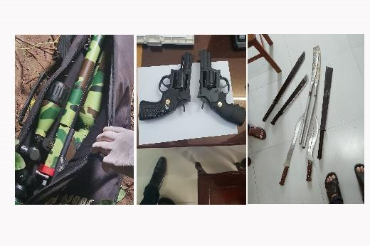 Quá trình điều tra, Công an tỉnh Trà Vinh đã thu giữ 5 súng tự chế (3 khẩu súng dài, 2 khẩu súng ru lô) cùng nhiều hung khí tự chế nguy hiểm.