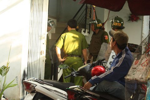 | Hàng chục cảnh sát đột nhập vào căn nhà số 1/C6-KP 3, An Phú, Thuận An, Bình Dương bắt đối tượng buôn ma túy tử thủ. Ảnh: báo Thanh Niên |