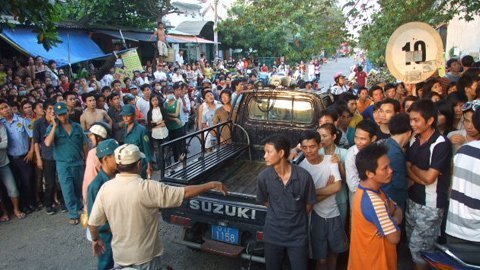 | Hàng trăm người dân hiếu kỳ theo dõi sự việc trước căn nhà, nơi Bình tử thủ. Ảnh: Anh Phương |