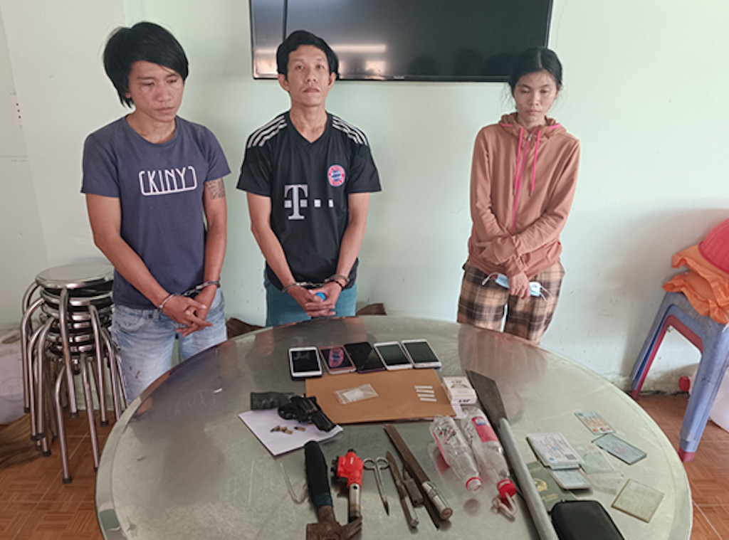 Tại đây, lực lượng chức năng đã phát hiện quả tang 3 đối tượng Bảo, Hiền, Quân cùng 2 đối tượng khác đang sử dụng ma tuý. Tiến hành kiểm tra căn nhà, công an thu giữ được 4 gói tinh thể màu trắng (ma túy loại Methamphetamine có trọng lượng hơn 0,6gr) trong phòng ngủ của Bảo và Hiền cùng 1 gói ma tuý có trọng lượng 0.2gt trong cốp xe máy của Quân.