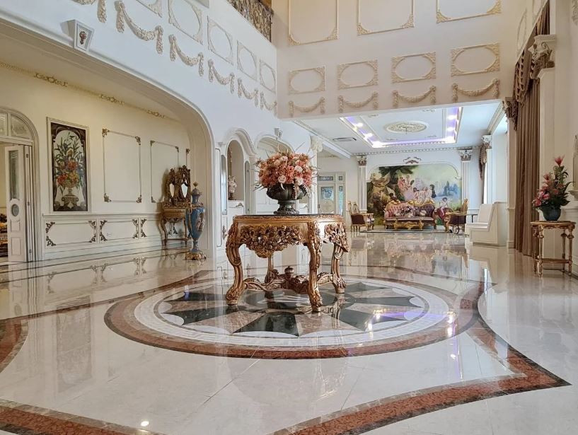 Không gian mặt tiền của dinh thự rất hoành tráng và được trang trí theo phong cách cổ điển