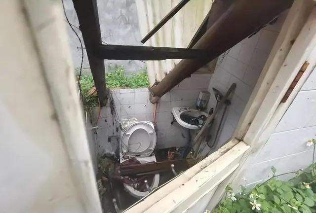 Bước vào trong, các mảnh ván, gỗ, tôn, thùng xốp vứt la liệt. Không gian căn nhà chỉ còn mấy bức tường, một nhà vệ sinh cũng bị hư hỏng, xuống cấp.