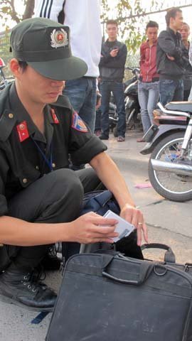 Với nhiều biểu hiện không bình thường khi bị áp sát kiểm tra, Trung tá Vũ Đức Bình nhận định Thắng chính là đối tượng tội phạm chuyên nghiệp. Từ nhận định này, bằng các biện pháp nghiệp vụ, tổ công tác đã làm rõ những tài sản Thắng mang theo bên mình gồm ba chiếc ba lô bên trong đựng ba chiếc laptop, nhiều thẻ nhớ, ổ cứng là tài sản bất minh.