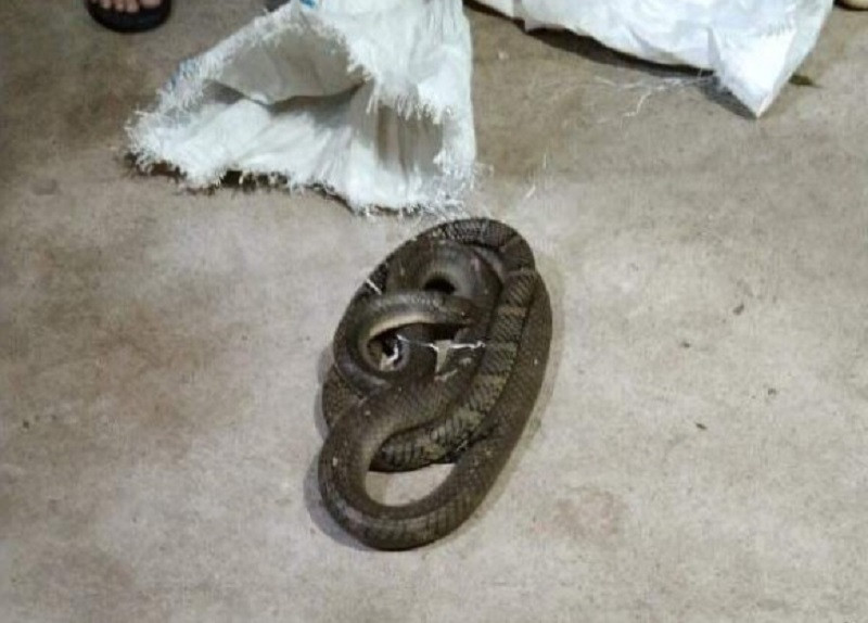 Trước đó, vào ngày 10/7, ông C. nghe nhiều người hàng xóm hô hoán có rắn bò vào nhà cắn gà nên cùng với con trai và một số người khác đến vây bắt rắn.