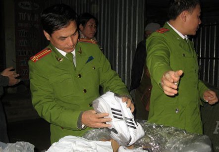 Các đôi giầy đều được đóng gói trong các bao tải dứa. Do không có giấy tờ chứng minh nguồn gốc xuất xứ nên số giầy "hàng hiệu" trên bịtạm giữ để xác minh làm rõ.