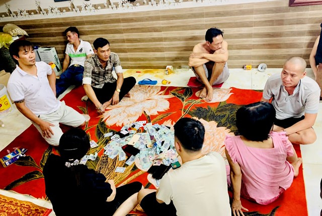 9 đối tượng đánh bạc gồm 3 đối tượng nữ: Trần Thị Hạnh (54 tuổi, trú thị trấn Lôc Hà); Lê Thị Oanh (51 tuổi trú huyện Lộc Hà) và Nguyễn Thị Thu (42 tuổi, trú huyện Nghi Xuân).