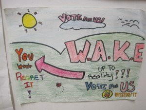 Nhóm 3: W.A.K.E. Democratic Party (Đảng Dân chủ W.A.K.E [THỨC TỈNH], ghép tên của bốn bạn Walter, Alan, Kevin, và Esther)