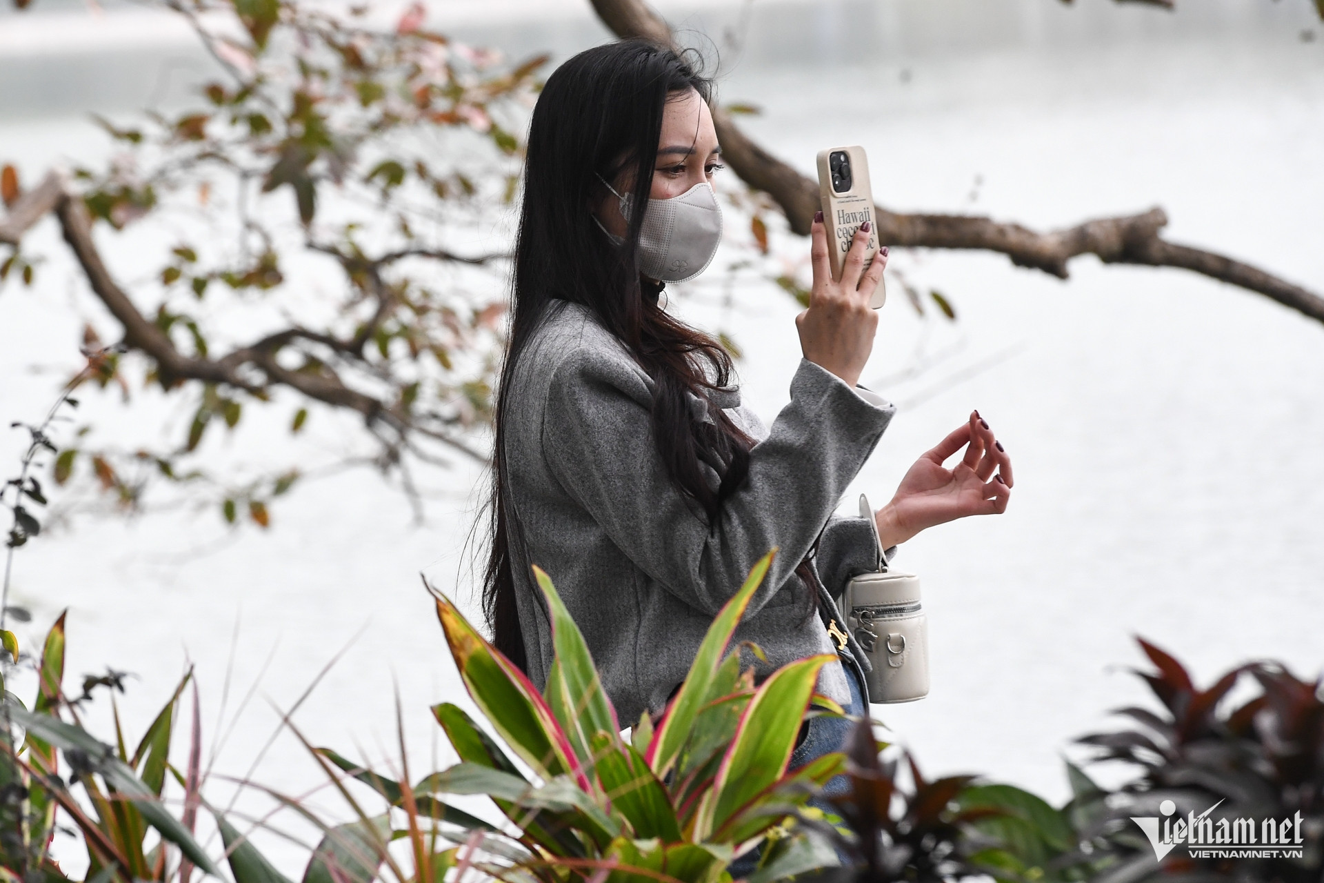 Nhiều khách du lịch, người dạo phố bên hồ Gươm bất đắc dĩ phải mang theo chiếc khẩu trang. Xung quanh họ luôn có một lớp không khí mờ đục.