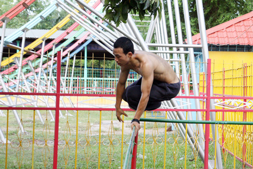 | Tận dụng mọi thứ để luyện tập, từ lan can... |