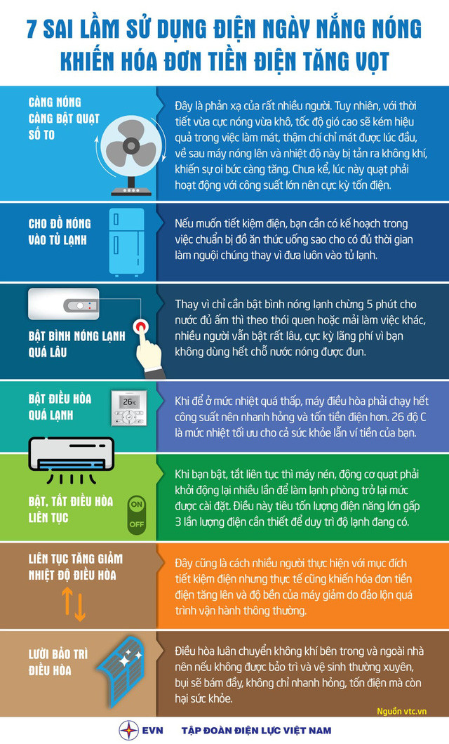 Trong những ngày nắng nóng, khó có thể tránh khỏi tiêu thụ điện nhiều hơn bình thường. Tuy nhiên bạn cần tránh những sai lầm dưới đây khiến số điện nhảy vọt nhé.