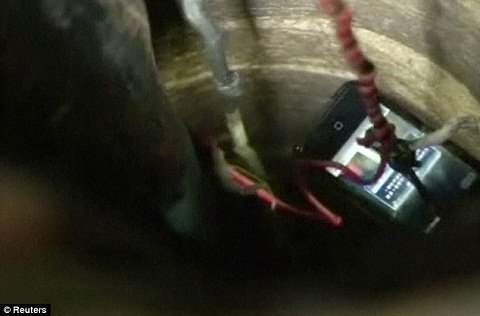 Những người cứu hộ nghĩ ra ý tưởng buộc dây vào điện thoại iPhone rồi thả xuống giếng để xác định vị trí của bé 2 tuổi đang bị mắc kẹt.