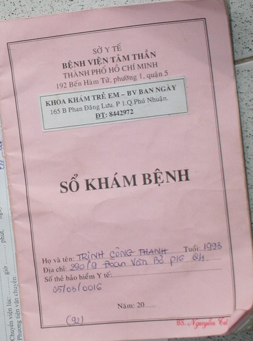 | Sổ khám bệnh do bệnh viện tâm thần cấp cho Thanh. |