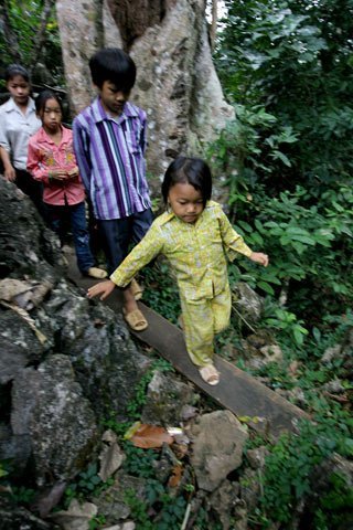anh chị đi kèm, đặc biệt khi qua những tấm ván chông chênh bên những bờ