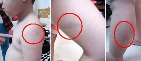 Những vết bầm tím trên người cháu Khoa (Ảnh: Công an Đà Nẵng) |