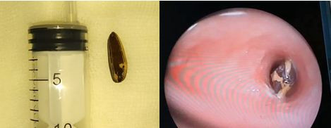 Kết quả chụp cắt lớp vi tính lồng ngực ghi nhận vật lạ bất thường trong khí quản của bệnh nhi. Trẻ được nội soi phế quản ống mềm cấp cứu dưới gây mê. Qua nội soi, bác sĩ ghi nhận 1 hạt hướng dương còn nguyên vỏ, mắc kẹt ở khí quản, đây chính là nguyên nhân gây suy hô hấp cho trẻ. Sử dụng các dụng cụ chuyên dùng, các bác sĩ đã gắp hạt hướng dương ra ngoài. Sau thủ thuật, trẻ tiếp tục được theo dõi, điều trị và xuất viện sau 3 ngày.
