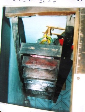 Cầu thang gỗ - vị trí mà gia đình nhà chồng cho rằng chị L đã bất cẩn, trượt chân ngã và gặp nạn.