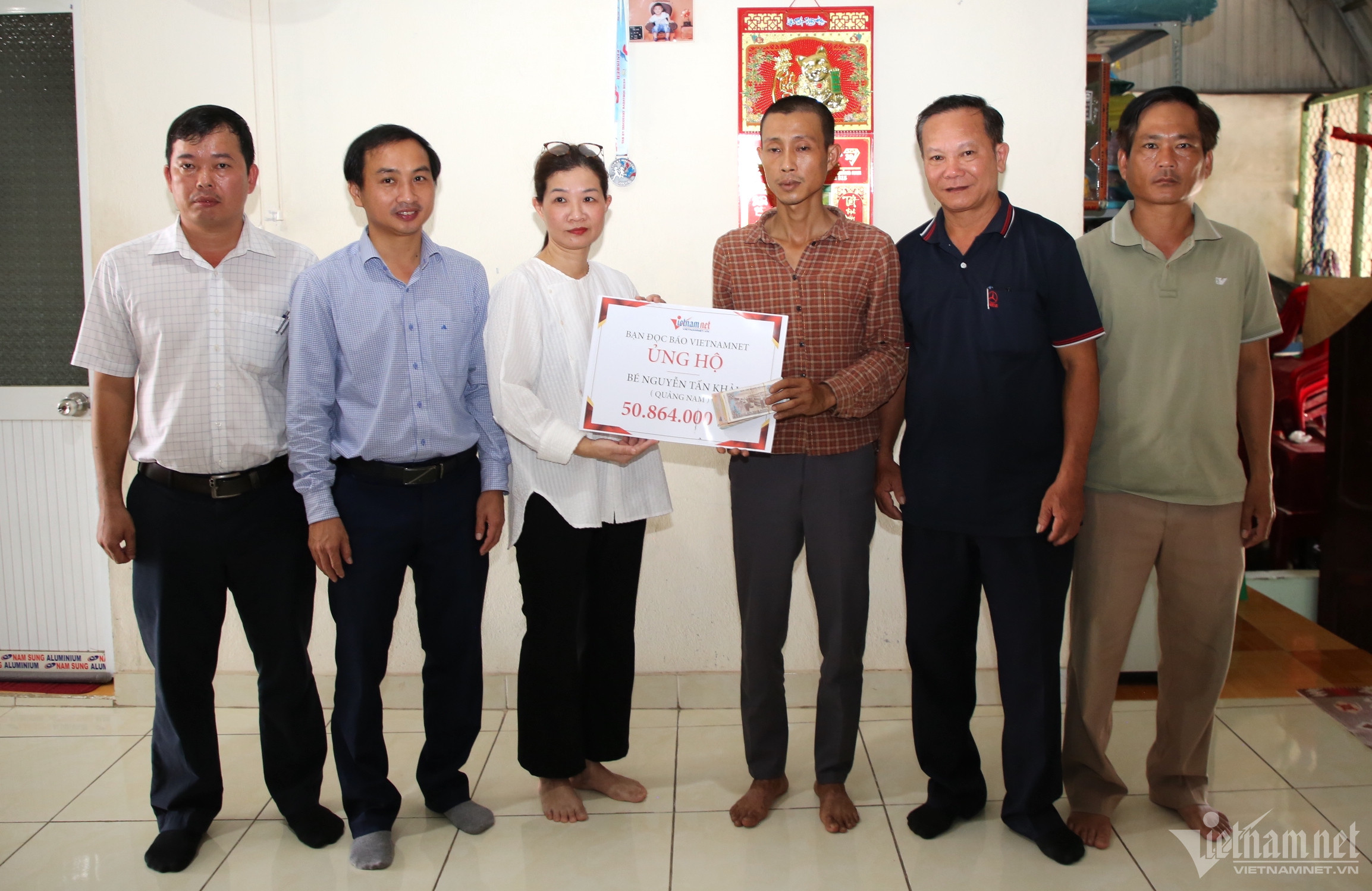 Tại đây, thay mặt độc giả, báo VietNamNet đã trao số tiền 50.864.000 đồng tới bố mẹ em. Cùng với đó, sau khi bài viết đăng tải, Hội bảo vệ trẻ em tỉnh, Quỹ bảo trợ trẻ em tỉnh và TP Tam Kỳ đã trao 25 triệu đồng cho gia đình.