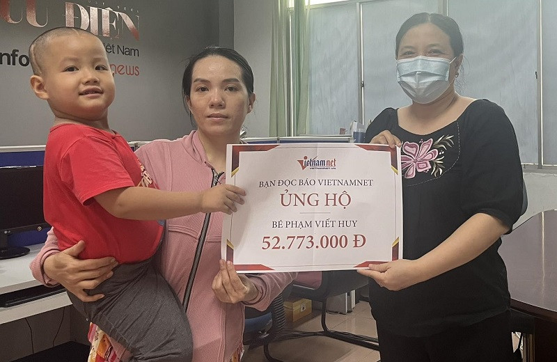 Phạm Viết Huy là em bé đáng thương trong bài viết: "Cha nổi hạch đau đớn vẫn cố kiếm tiền cho con trai chữa bệnh u não".