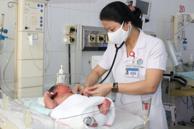 Sau khi chào đời, bé trai được đưa về chăm sóc, theo dõi tại Khoa Nhi. Các bác sĩ chẩn đoán trẻ bị suy hô hấp nên được cho thở oxy, dùng thuốc kháng sinh, theo dõi đường huyết và chăm sóc đặc biệt.