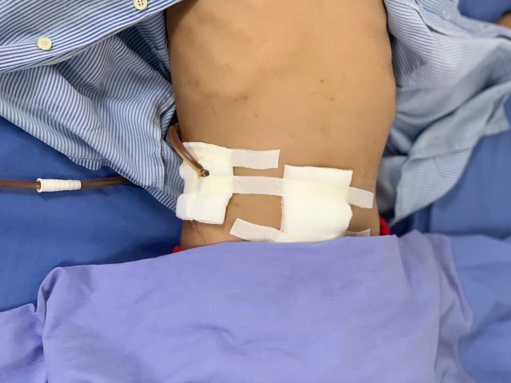 Thạc sĩ, bác sĩ Nguyễn Công Bằng, Trưởng khoa Ngoại Tổng hợp và ê-kíp mổ khâu vết thương trực tràng, làm sạch và dẫn lưu ổ bụng. Sau mổ, tình trạng bệnh nhi tiến triển tốt. Đến ngày 27/5, sức khỏe bệnh nhi ổn định.
