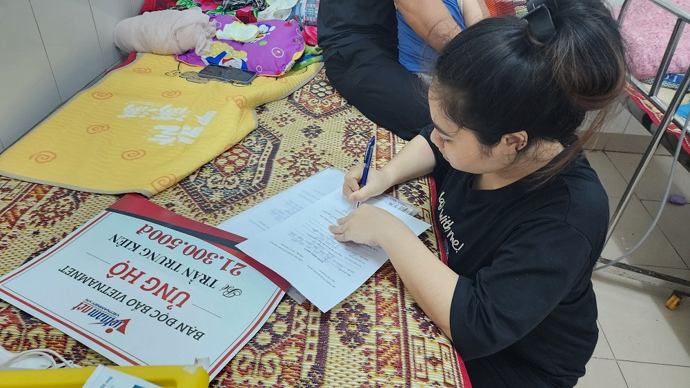 Đón nhận số tiền, chị Nguyệt bộc bạch: “Tôi không biết nói gì ngoài lời cảm ơn chân thành gửi đến bạn đọc của báo đã luôn sẻ chia, động viên gia đình tôi trong thời gian qua. Gia đình hứa sẽ dùng toàn bộ số tiền để đóng viện phí và mua thuốc thang điều trị bệnh cho Kiên.”