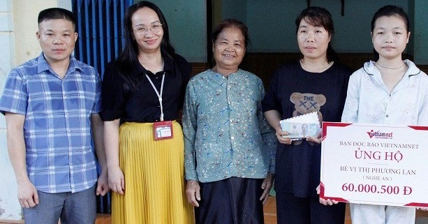Phó Chủ tịch UBND huyện Quế Phong, bà Lô Thị Nguyệt gửi lời cảm ơn tới bạn đọc báo VietNamNet luôn đồng hành, sẻ chia để gia đình có thêm kinh phí chữa trị cho Phương Lan trong thời gian tới.