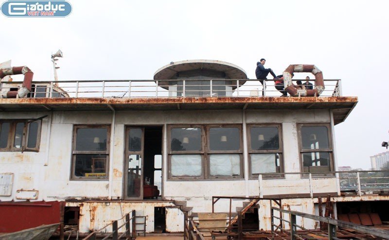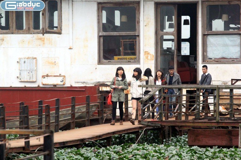 Con tàu hoang nằm giữa khu vực một số nhà hàng nổi trên Hồ Tây, Hà Nội, sát công viên Lý Tự Trọng đã kích thích trí tò mò của những bạn trẻ ưa khám phá ở Hà Thành.