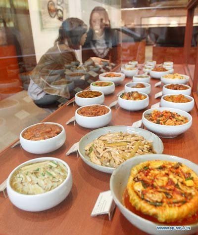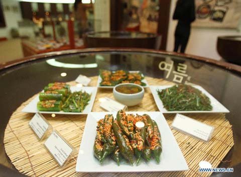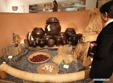 Những mẫu kimchi được bày tại bảo tàng Pulmuone.