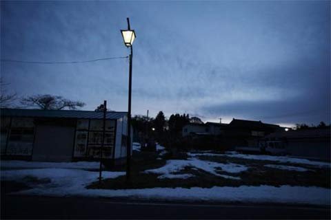 Đèn đường ở thị trấn hoang Iitate.