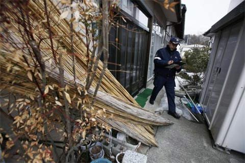 Cảnh sát kiểm tra các ngôi nhà ở thị trấn hoang Iitate.