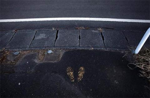 Dấu chân trên một góc phố ở thị trấn bỏ hoang Naraha
