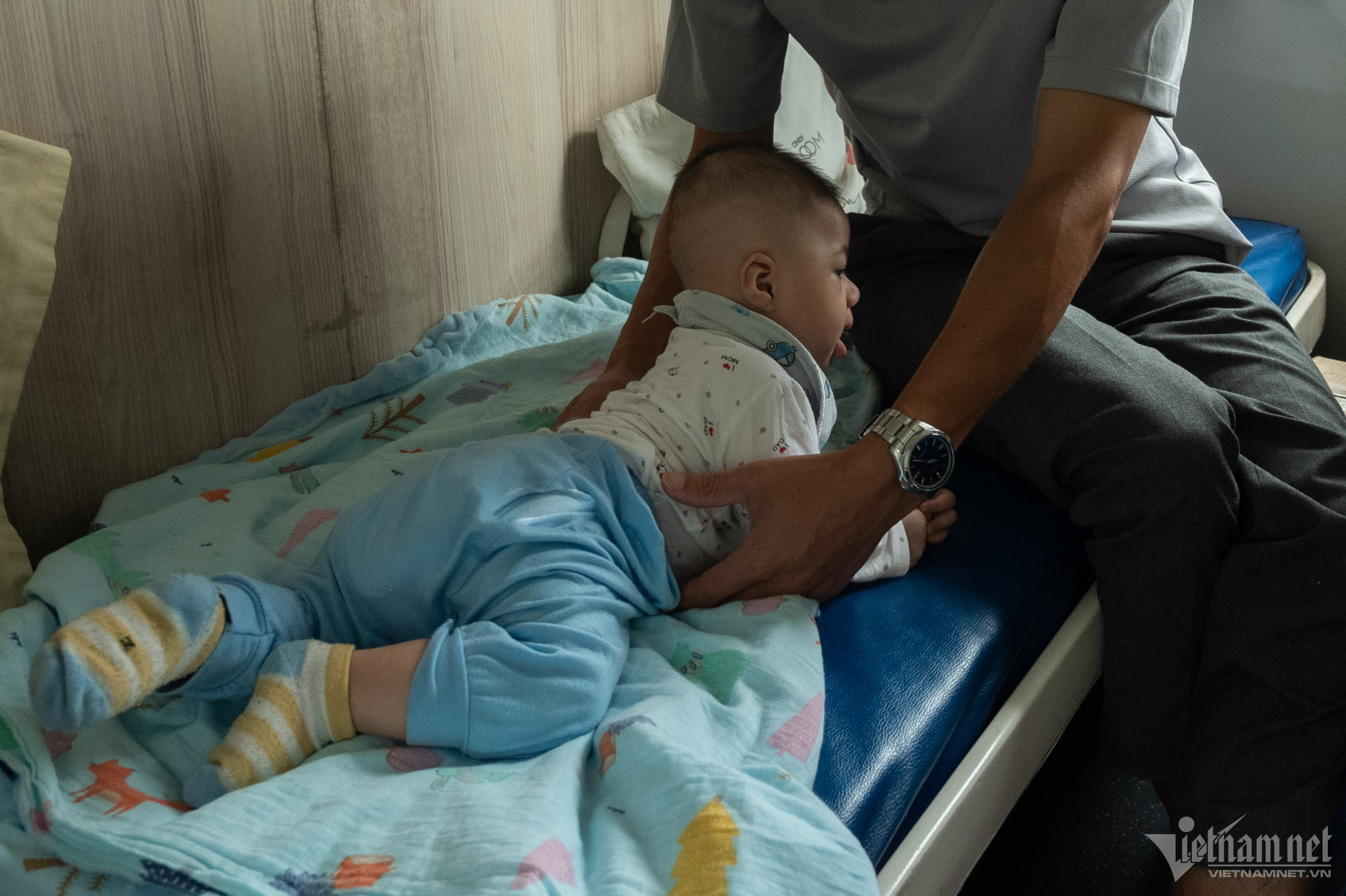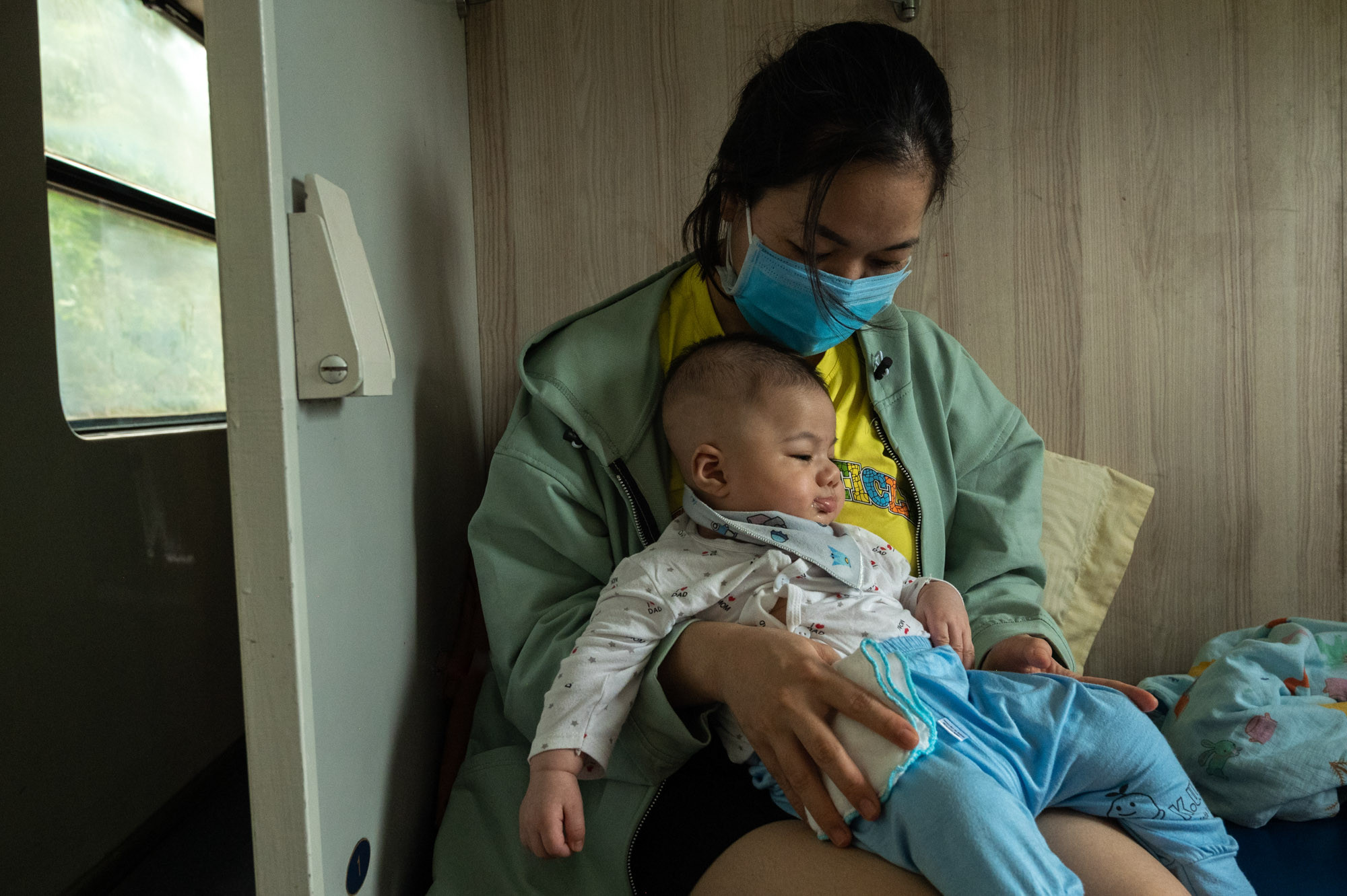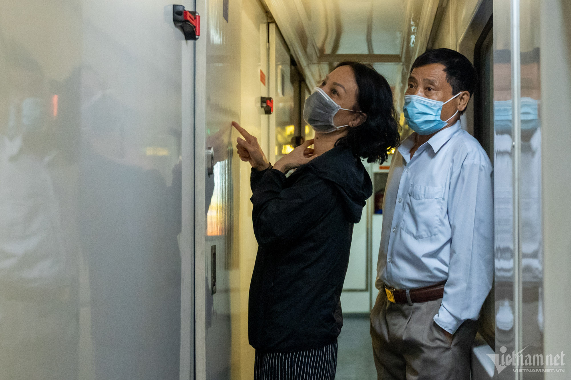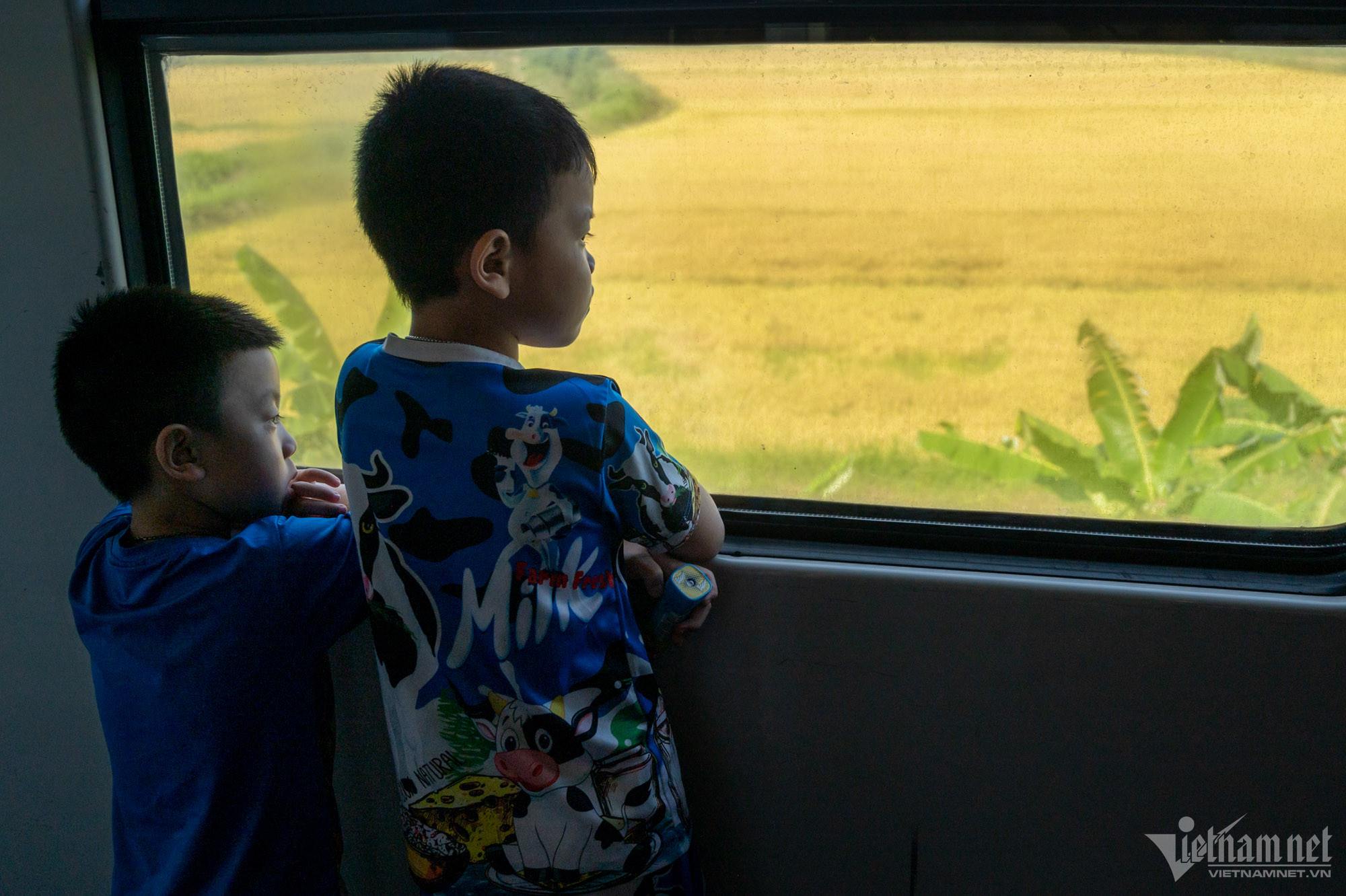 Trong một khoang giường nằm, phóng viên gặp gia đình anh Sơn đang di chuyển từ Huế vào quê ngoại Đà Nẵng. “Lên tàu là cháu tỉnh luôn, rồi nằm chơi nãy giờ", anh hứng thú nói về con gái của mình.