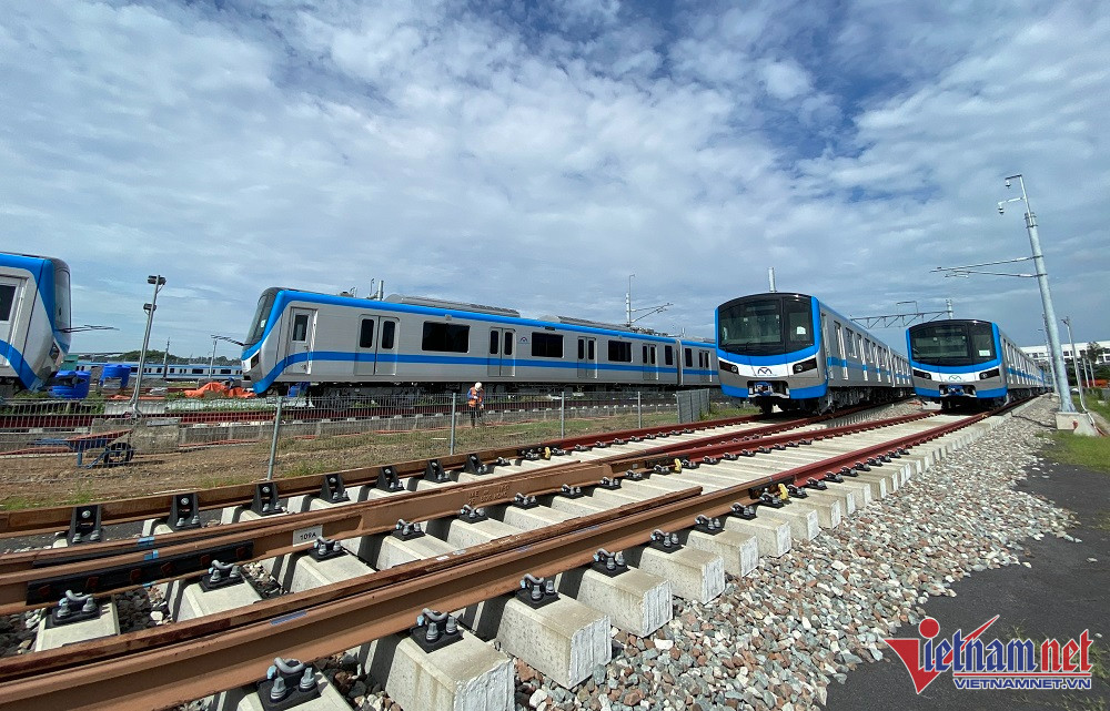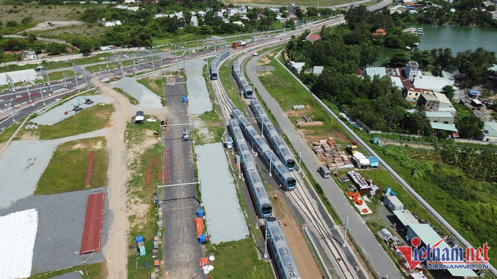 Đến nay, toàn bộ 17 đoàn tàu của tuyến metro Bến Thành- Suối Tiên đã được tập kết về Depot Long Bình. Trong ảnh là toàn cảnh Depot Long Bình rộng hơn 20ha bao gồm nhà điều hành, nhà xưởng và bãi đỗ tàu đang trong quá trình hoàn tất (tiến độ đạt 90% khối lượng công việc)Toàn bộ tàu đã được đấu nối và đặt lên đường ray. Mỗi đoàn tàu có 3 toa với tổng chiều dài 61,5m, tốc độ tối đa thiết kế 110km/h (đoạn trên cao), 80km/h (đoạn ngầm), có thể chở tổng cộng 930 khách, trong đó có 147 khách ngồi ghế, 783 khách đứng, trong tương lai sẽ nối thành 6 toaKhu vực bãi đỗ tàu metro. Bãi có 30 đường đỗ (tương đương 30 đoàn tàu loại 6 toa), mỗi đường đều có rãnh thoát nước chạy song song.Hệ thống tiếp điện trên cao tại khu vực bãi đỗ tàu cơ bản đã hoàn thành 17 đoàn tàu với 51 toa đã được hạ đặt, cố định trên đường ray có khổ 1.435 mmGiữa các đường ray được lắp rào chắn cao gần 2m để đảm bảo an toàn khi tàu vận hành. Theo Maur, công tác đánh giá, chạy thử… sẽ có các bước như thử nghiệm tĩnh, đơn động, liên động, tích hợp để đảm bảo vận hành ở mức an toàn cao nhấtPhần kết nối giữa hai tòa tàu Hệ thống đường dây điện khí hóa cho đoàn tàu đã hoàn hành đấu nốiCông nhân tích cực thi công hạng mục của đường dây trên cao 1500 VTháng 10/2020, đoàn tàu đầu tiên của metro số 1 từ Nhật Bản về đến depot Long Bình. Đến nay tất cả 17 tàu đã về đủ, đặt rải rác trên các đường ray để chờ vận hành thử nghiệmĐể vận chuyển các đoàn tàu metro này, nhà thầu phải sử dụng xe siêu trường siêu trọng. Bên cạnh đó, xuyên suốt qua trình vận chuyển còn được CSGT phần luồng để đảm bảo an toànHoàn thành nhập khẩu 17 đoàn đoàn tàu về TP.HCM đánh dấu dự án metro số 1 chuyển qua giai đoạn mới, tập trung công tác thử nghiệm hệ thống, thử tàu... trước khi vận hành thương mạiDự kiến, tuyến metro số 1 sẽ hoàn thành xây dựng cuối năm 2023 để đưa vào khai thác thương mại.