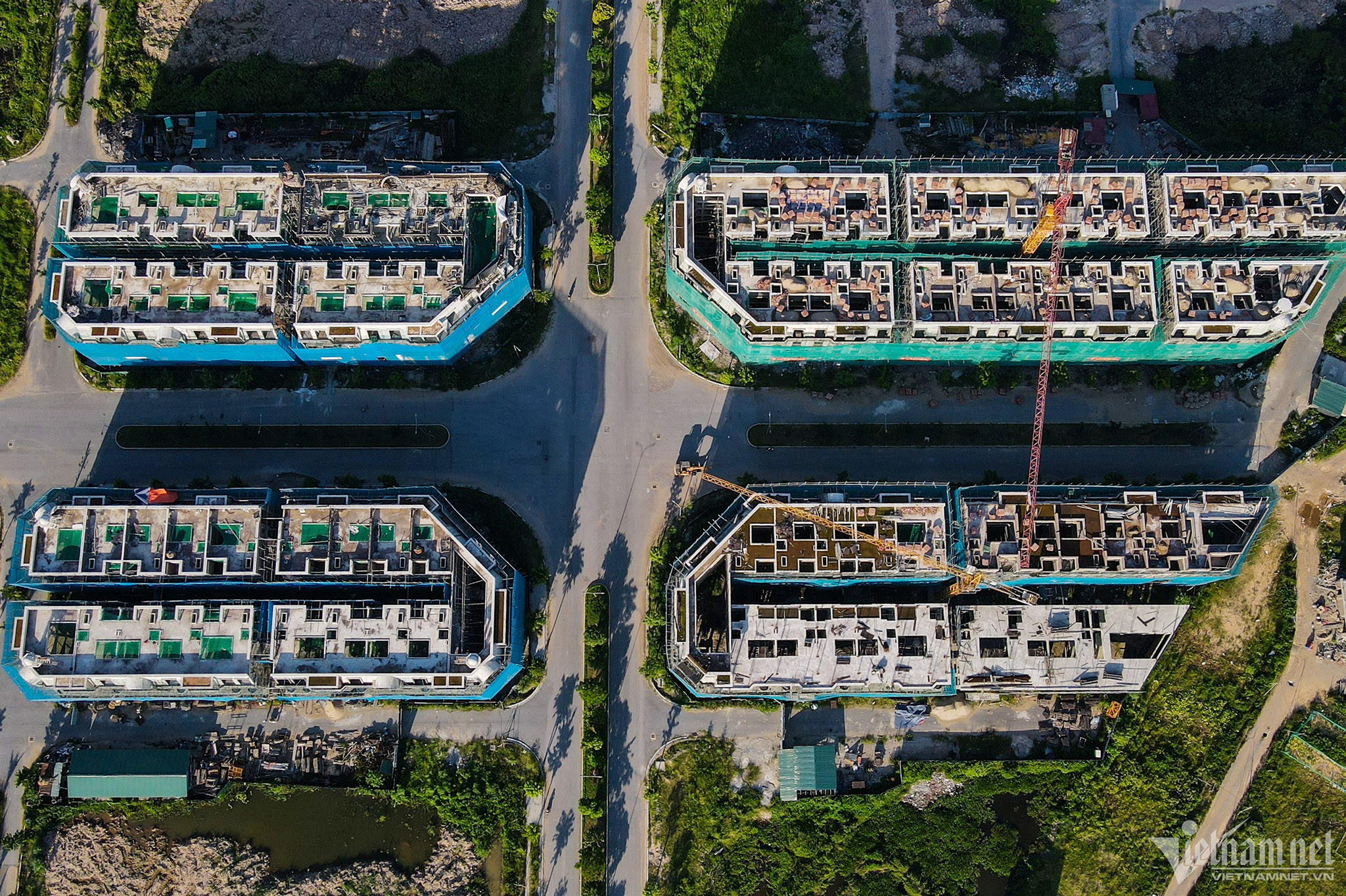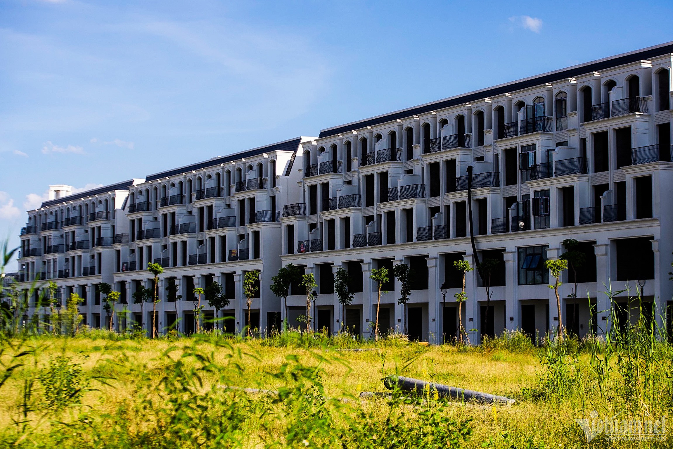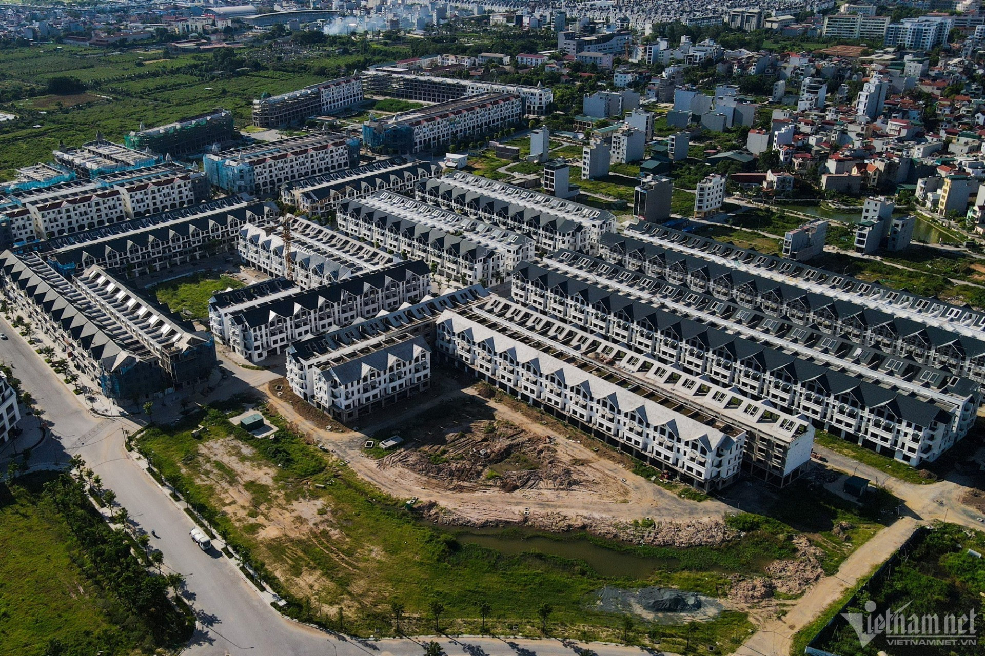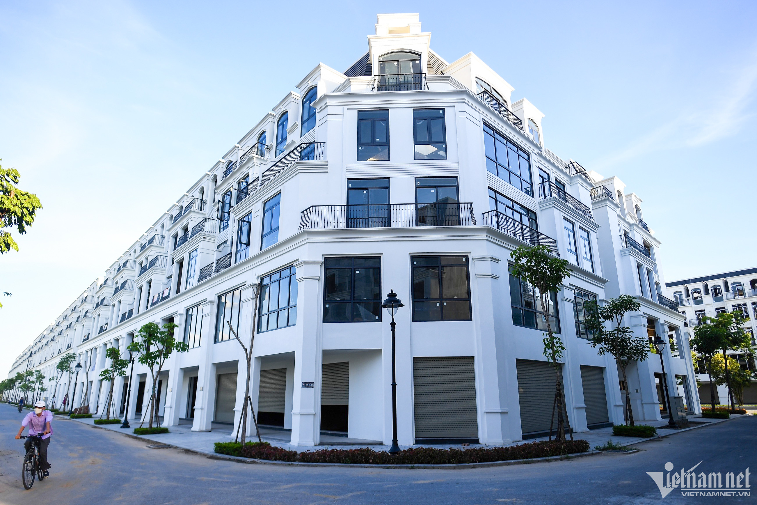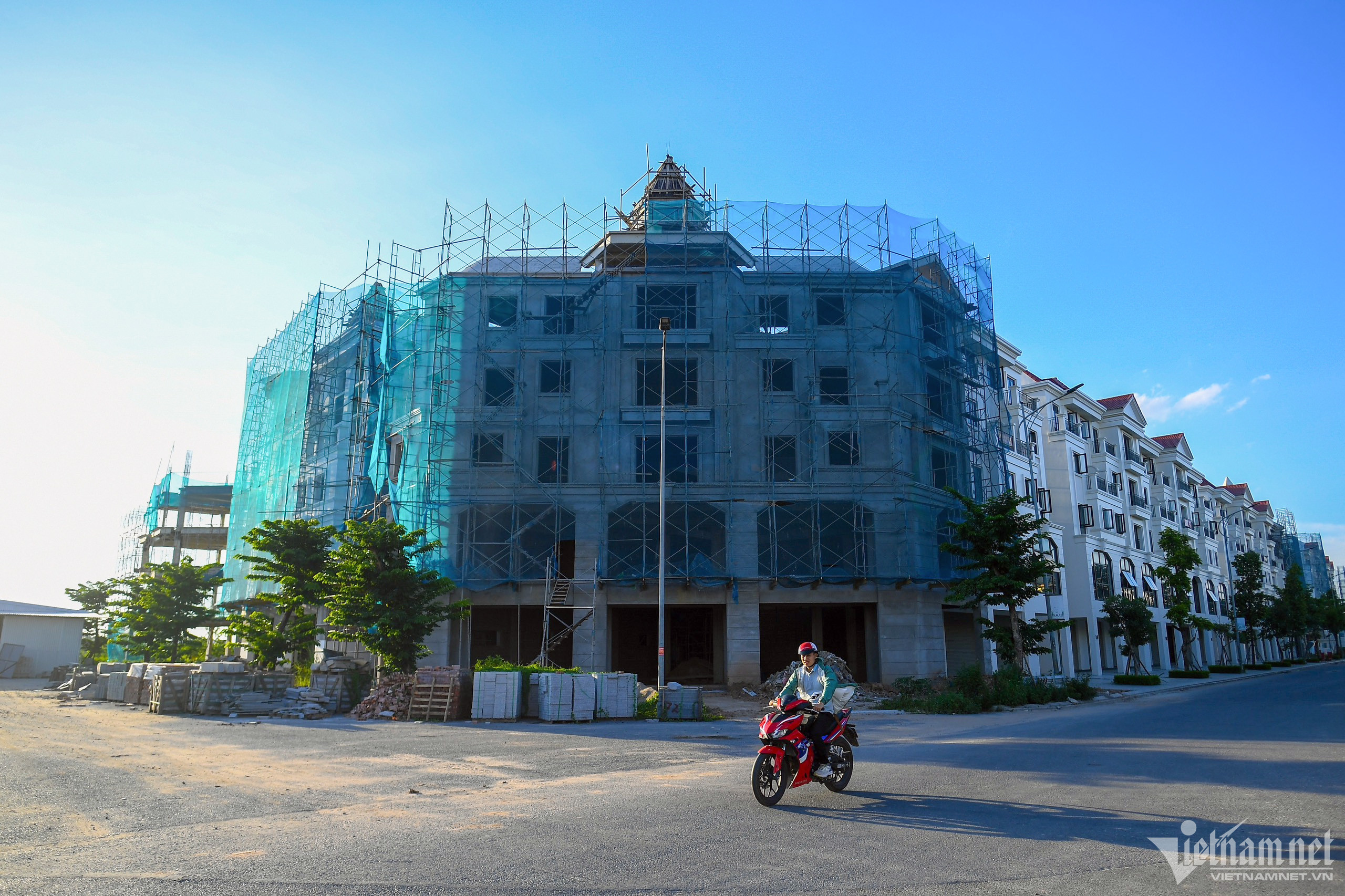 "Phần thô của các biệt thự liền kề tại đây được hoàn thiện từ đầu năm 2022 nhưng vẫn rất ít người thuê và mua. Do không gian rộng, vắng người, buổi chiều người dân quanh đây thường đi bộ, đạp xe tập thể dục", ông Nguyễn Đình Trạc, người dân sống gần đây nói.