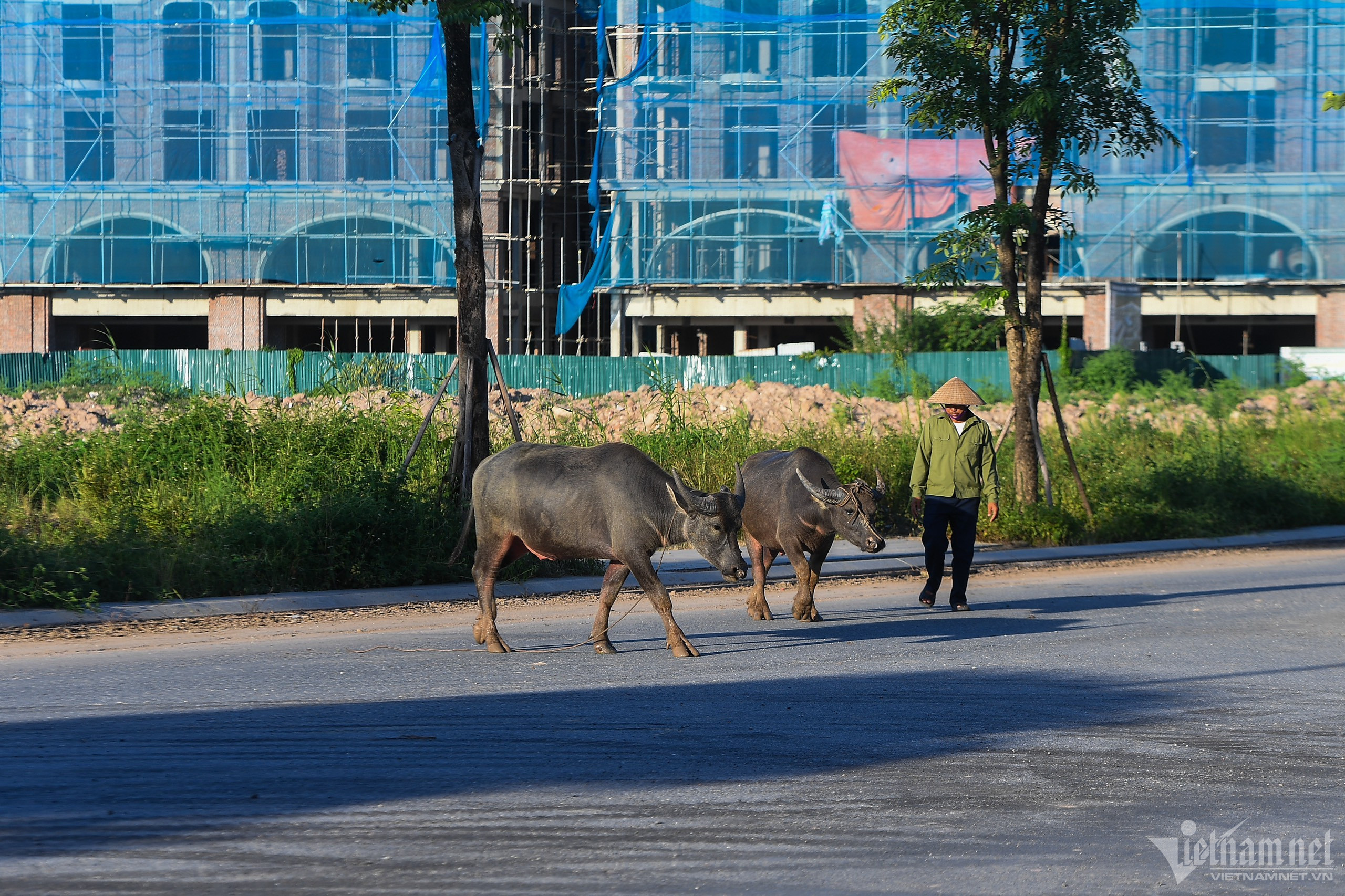 Trâu bò được chăn thả trong khu đô thị này một cách bình thường như khi xưa nơi đây là một cánh đồng.