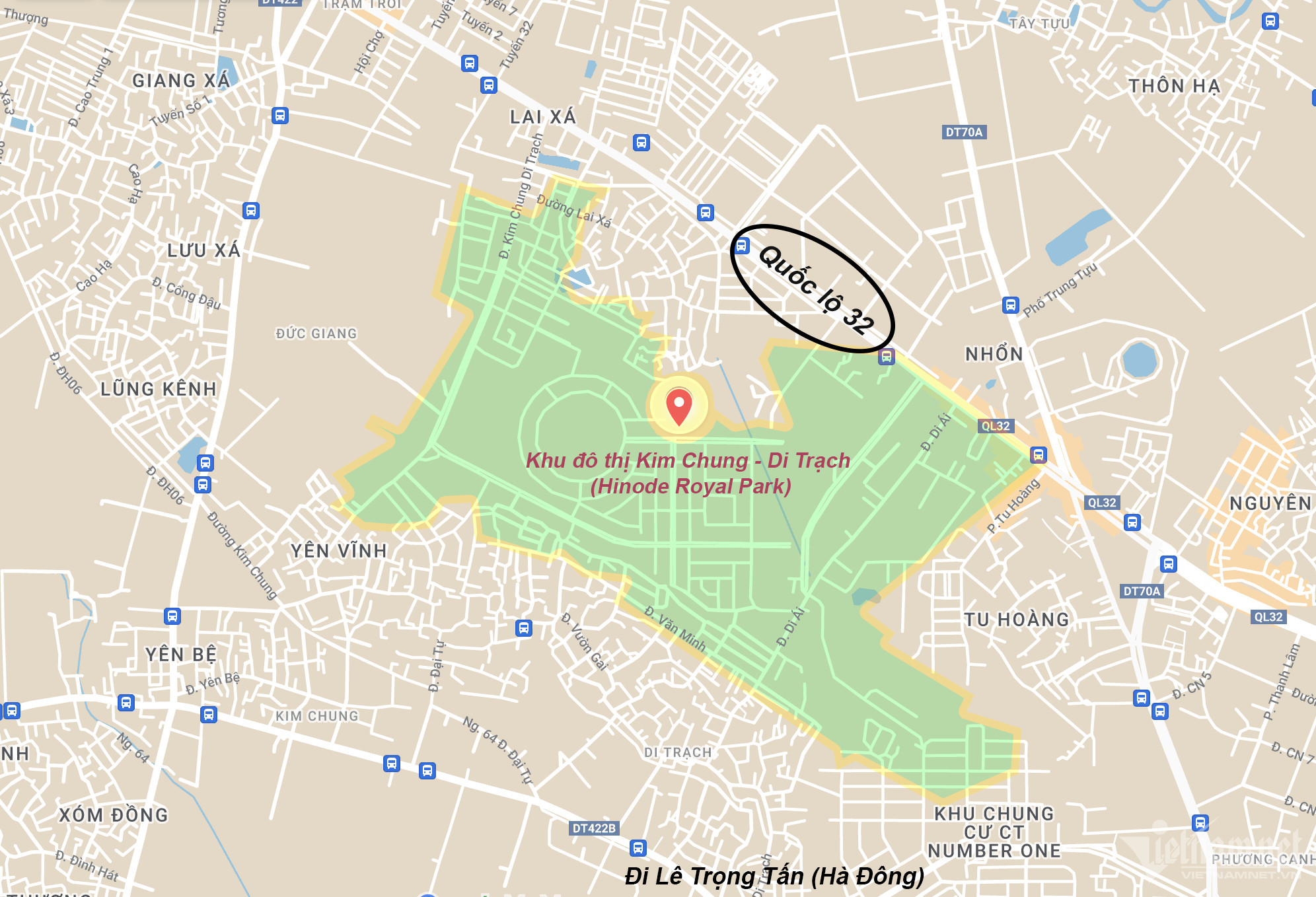 Một góc dự án khu đô thị mới Kim Chung - Di Trạch, Hoài Đức (nay là Hinode Royal Park) có diện tích hơn 130 ha do Tổng công ty CP Thương mại Xây dựng (Vietracimex) làm chủ đầu tư.