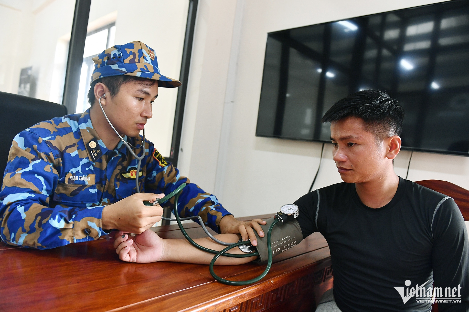 Trong ảnh, hai chiến sĩ Phạm Ngọc Phúc và Nguyễn Tiến Thành được kiểm tra sức khỏe trước buổi huấn luyện.