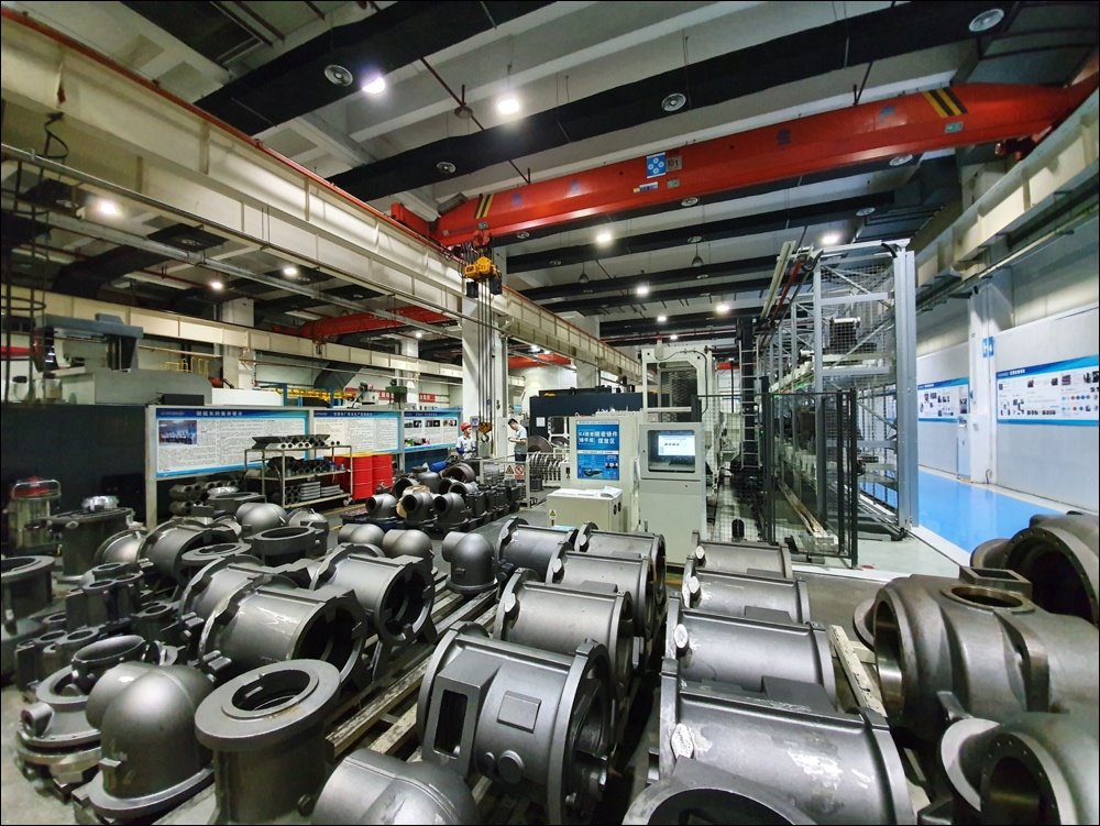 Các vỏ máy nén li tâm, máy bơm sau khi thành phẩm. Các vỏ máy được sơn xám đã được kiểm tra chất lượng, trong khi vỏ máy màu đỏ chờ kiểm tra. |