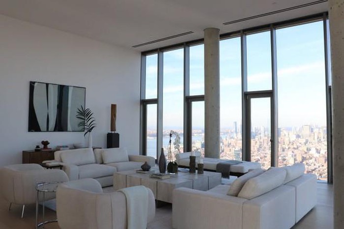 Căn penthouse ở tầng 57 trị giá 24,5 triệu USD là căn hộ đắt nhất đang được rao bán tại tòa nhà. Bên trong căn phòng là những gam màu trung tính được hòa lẫn với ánh sáng tự nhiên từ các khung cửa cỡ lớn, tạo nên cảm giác thanh thoát, nhẹ nhàng.