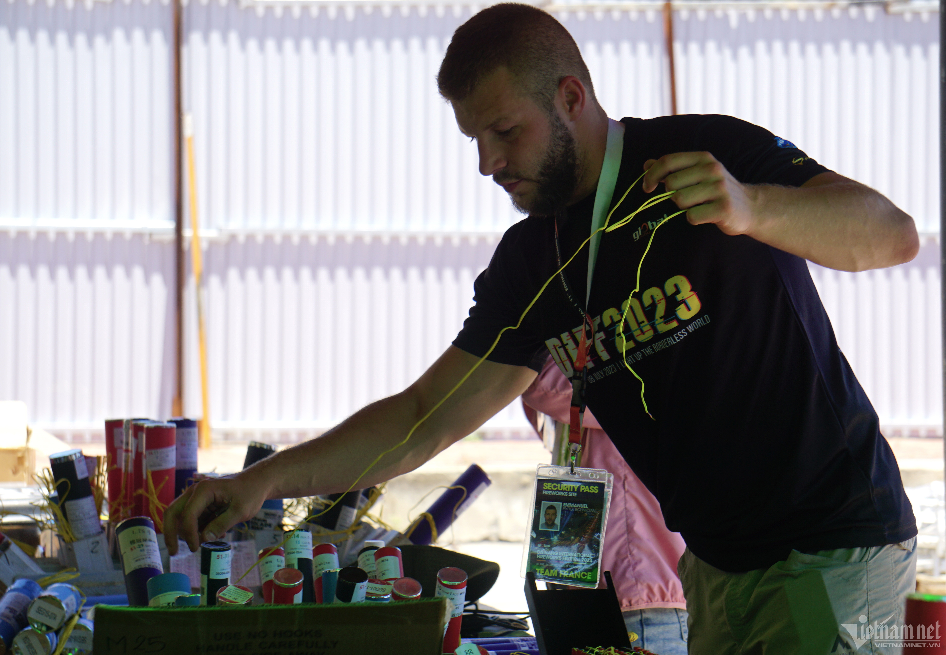 Trưa 5/7, trận địa pháo đêm thi chung kết Lễ hội pháo hoa quốc tế Đà Nẵng (DIFF 2023) tại bãi bắn phía bờ Tây sông Hàn nằm bên đường Bạch Đằng đã cơ bản hoàn tấtTrong đêm thi chung kết diễn ra vào tối 8/7, hai đội Pháp và Ý sẽ cùng so tài để tranh ngôi vị quán quân DIFF 2023, với chủ đề "Thế giới không khoảng cách".Đêm chung kết, đội Ý sẽ bắn trước. Dưới thời tiết nắng gắt, các thành viên đội Ý tỉ mỉ lắp đặt trận địa pháo, tránh những sai sót nhỏ nhấtPháo đã được đặt vào các ống phóngÔng Romeo (bìa phải; thành viên đội Ý) cho biết, đội đã chuẩn bị kỹ lưỡng và tự tin mang đến cho khán giả màn trình diễn ấn tượngTrong khi đó, trận địa pháo hoa của đội Pháp cũng đang trong quá trình hoàn tất. Nhiều pháo tầm trung và tầm cao cũng được đội lắp đặt trên bãi bắn, phủ bạt tránh trời mưa. Các thành viên đội Pháp kiểm tra và lắp đặt pháo