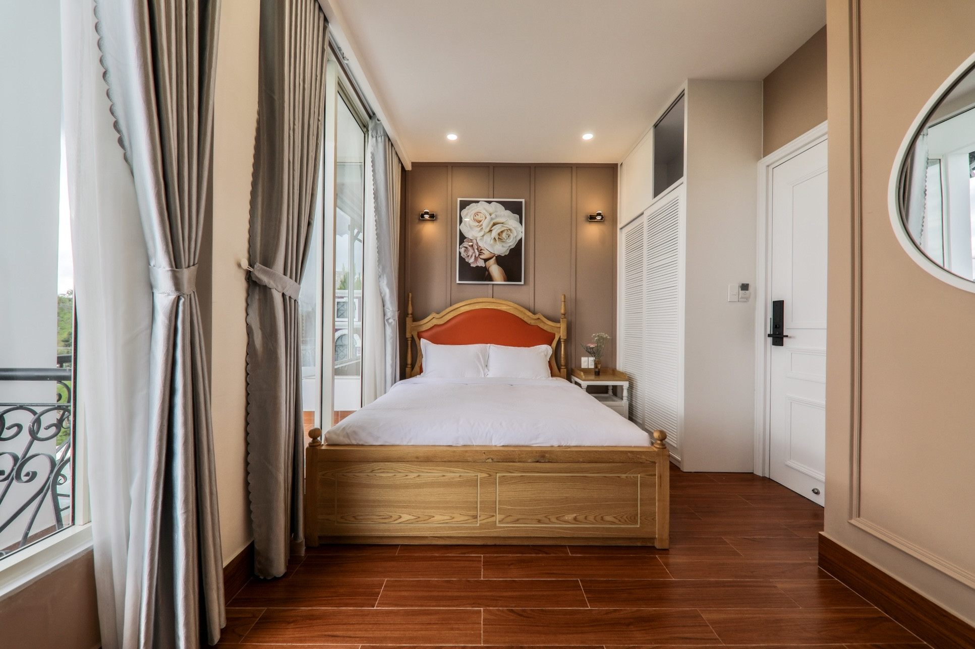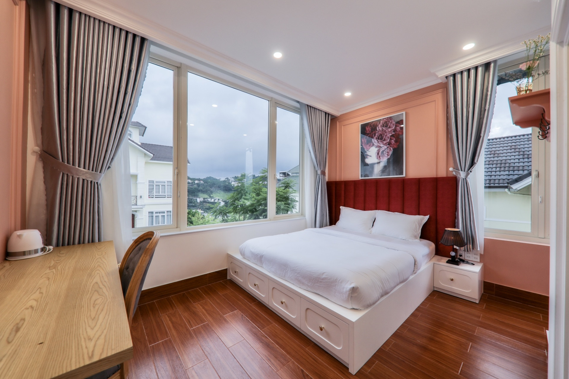 Với diện tích rộng 500 m2, căn biệt thự được thiết kế với 9 phòng ngủ sang trọng, hiện đại với tông màu chủ đạo mang tên màu sắc của hoa hồng - loài hoa biểu tượng của tình yêu. Họa tiết trang trí cũng được lựa chọn khéo léo thể hiện phong cách tinh tế của Kiều Linh.