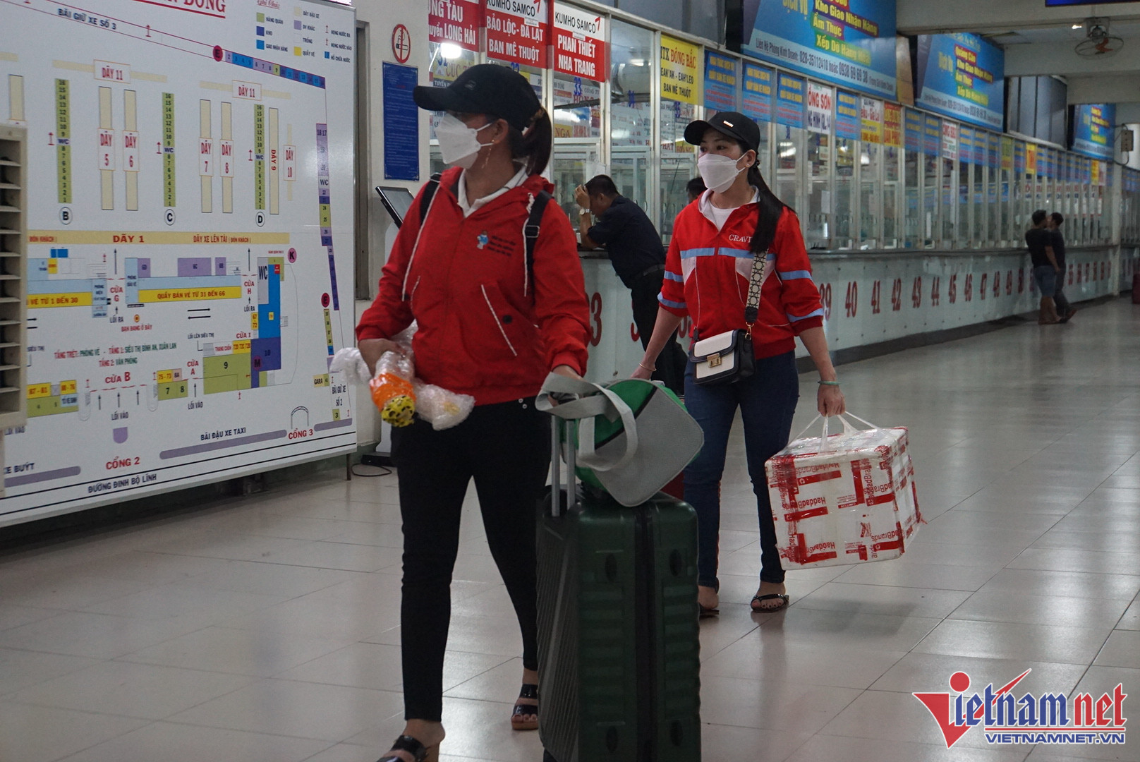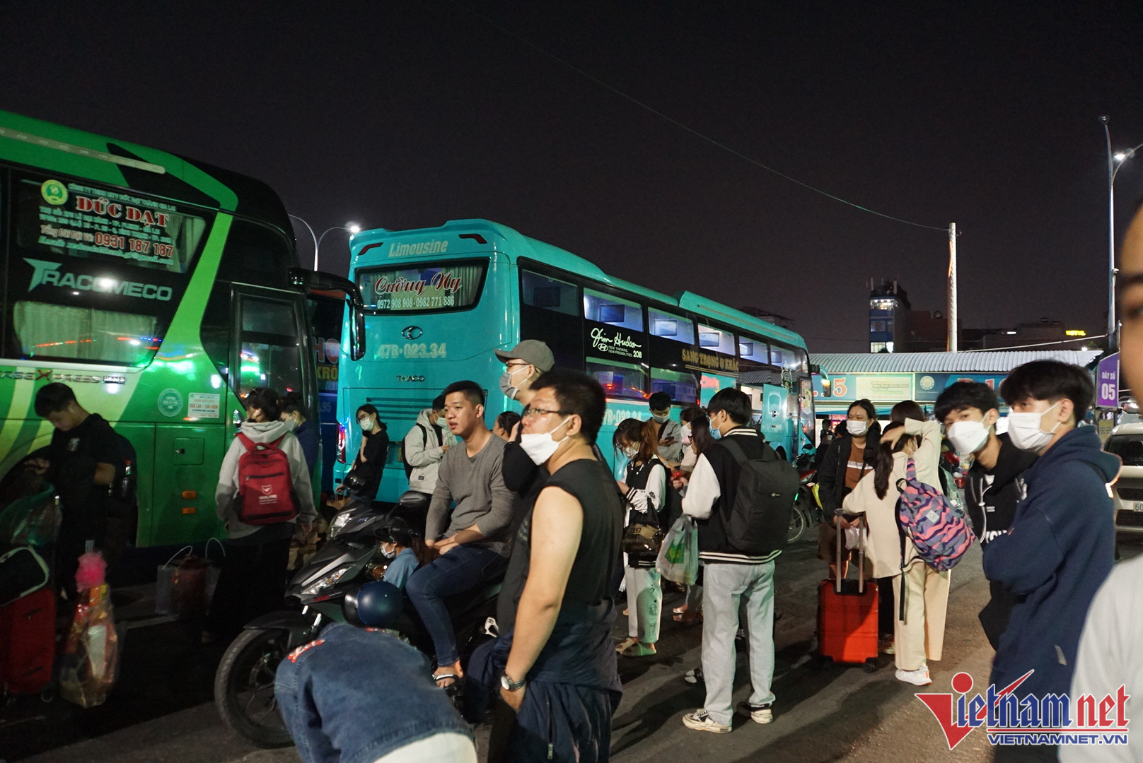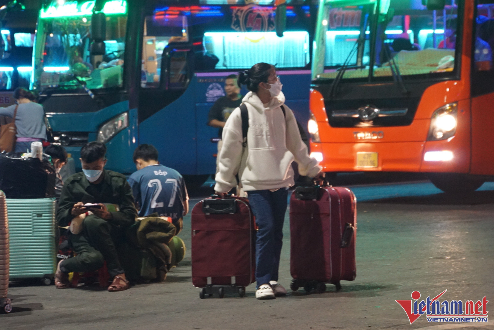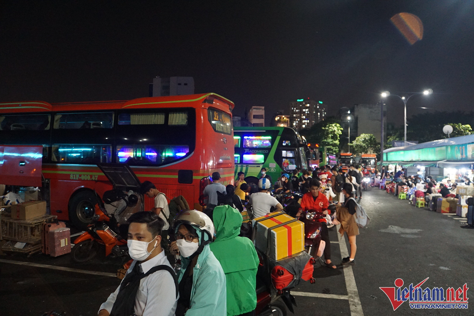 Chị Tuyết Mai (23 tuổi) cho biết, theo lịch xuất phát về Tuy Hòa (Phú Yên), 20h nhà xe mới xuất bến nhưng do bến xe ở xa và sợ kẹt xe nên chị ra trước khoảng 2 tiếng. Tối cùng ngày, Bến xe Miền Đông cũ (quận Bình Thạnh) cũng nhộn nhịp. Hành khách liên tục đổ về để về quê đón Tết.Bên trong bến, khách xếp hàng để chờ lên xe.Không khí nhộn nhịp, ai cũng mong sớm được về quê.